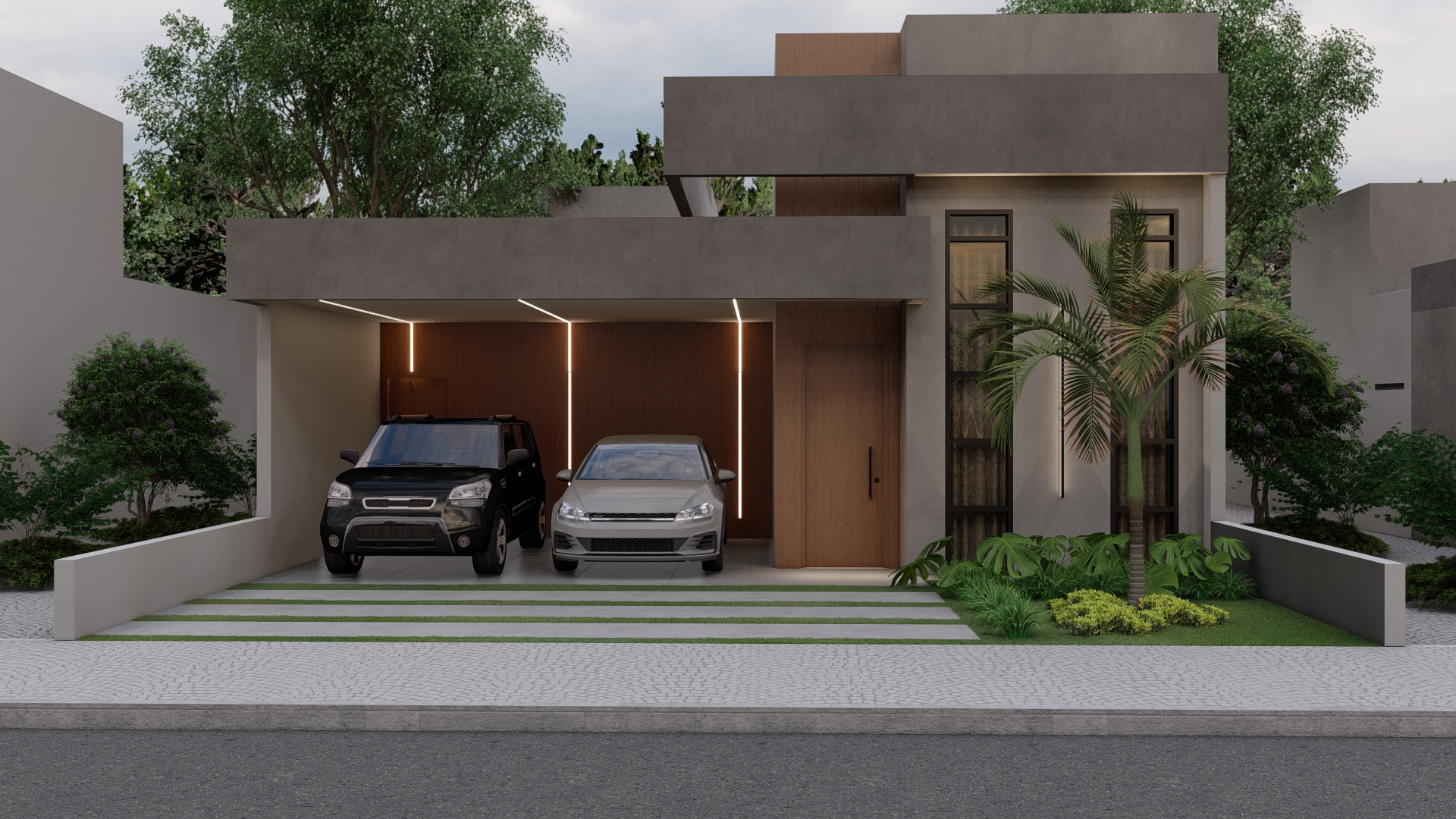 Descrição: Residência térrea com 3 suítes, área gourmet, cozinha integrada com sala de jantar e estar e piscina.