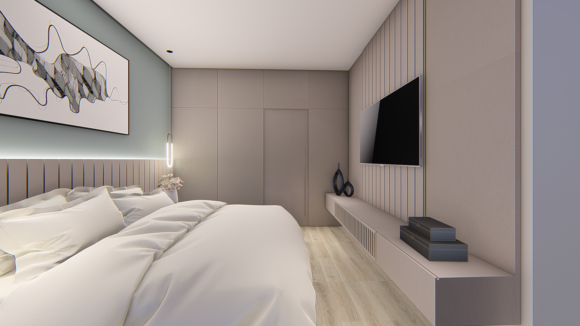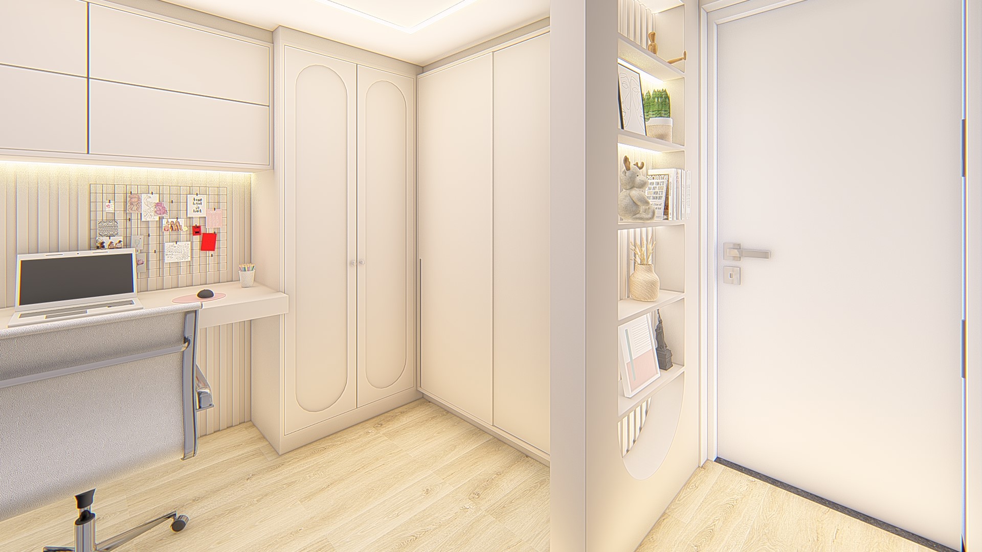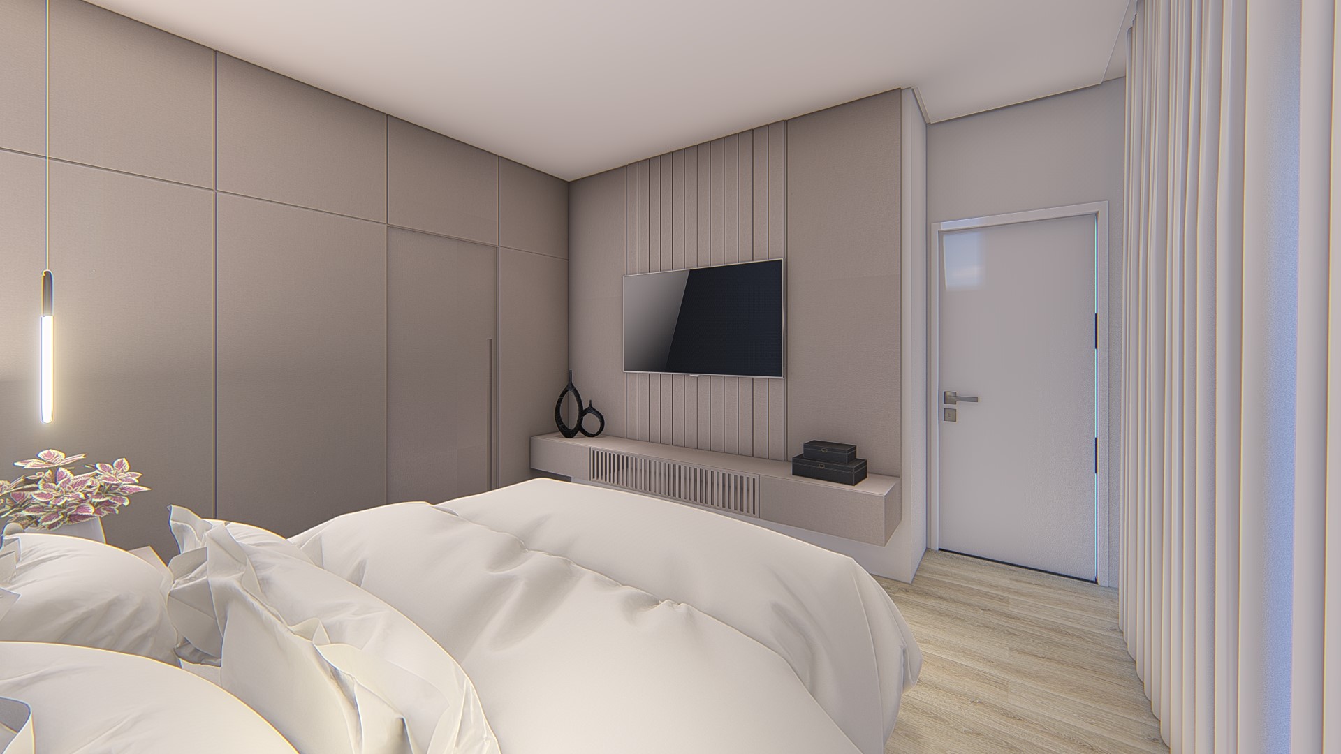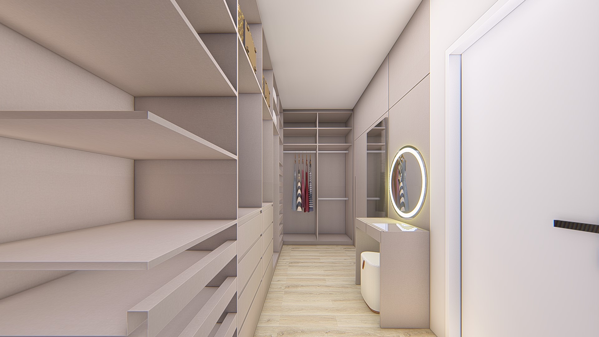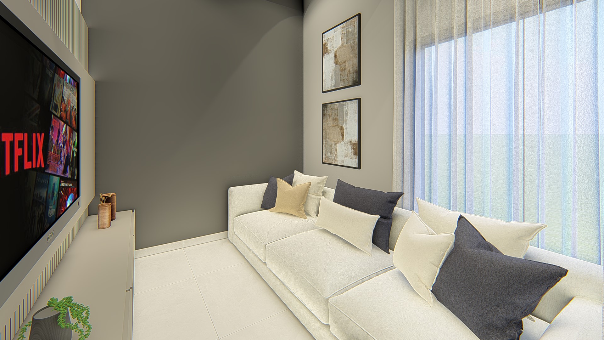 Descrição: Projeto arquitetônico e de design de interiores, incluindo detalhamentos de marcenaria, marmoraria e iluminação, para diversos ambientes da residência, como cozinha, lavabos, lavanderia, sala de TV e suítes.